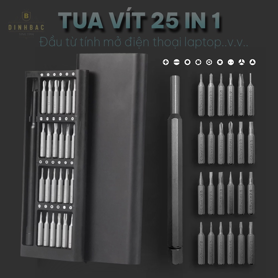 Bộ tua vít 25 chi tiết đầu từ tính mở điện thoại laptop và nhiều thiết bị khác Đình Bắc StoreChi tiết sản phẩm: