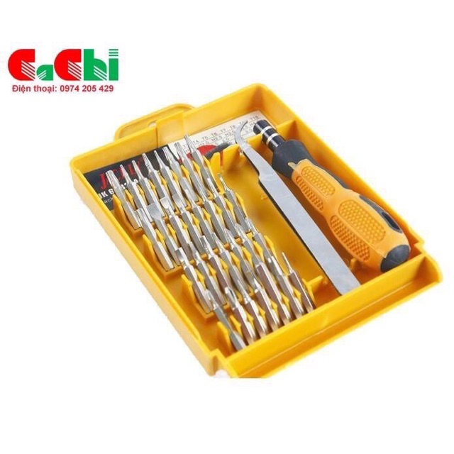 - Bộ sản phẩm bao gồm: 32 đầu vít, 1 nhíp vặn, 1 nhíp với nhiều kiểu đầu vít khác nhau như: đầu dẹt, tam giác, lục giác, 3 cạnh, 4 cạnh, 5 cạnh và 6 cạnh.