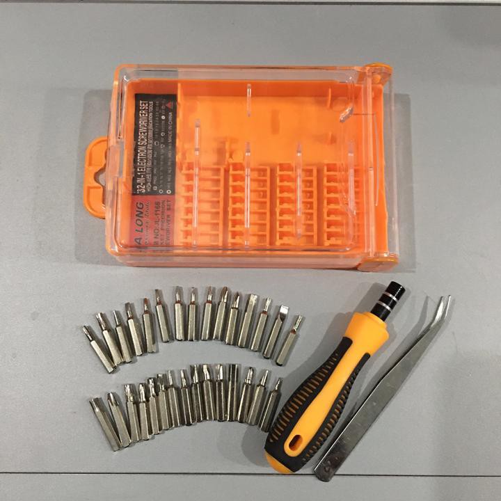 - Bộ sản phẩm bao gồm: 32 đầu vít, 1 nhíp vặn, 1 nhíp với nhiều kiểu đầu vít khác nhau như: đầu dẹt, tam giác, lục giác, 3 cạnh, 4 cạnh, 5 cạnh và 6 cạnh.