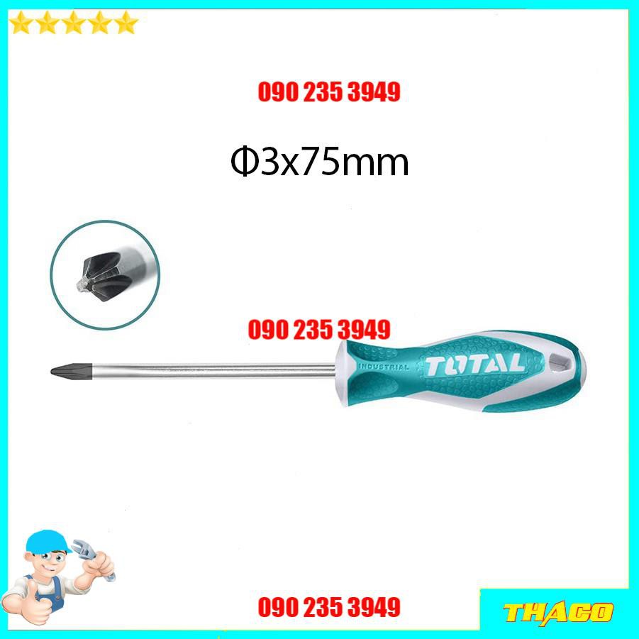 - Tuốc nơ vít total được thiết kế với tay cầm bằng nhựa mềm tránh tình trạng đau tay khi sử dụng trong quá trình dài, tay cầm được thiết kế với các vân tránh trơn trượt gây nguy hiểm khi tay bị dính dầu mỡ mồ hôi.
