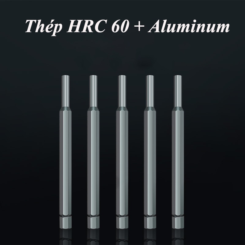• Đầu vít được gia công từ chất liệu thép cán nóng HRC 60 cùng hợp kim aluminum chống han gỉ, tăng độ bền, độ cứng chắc