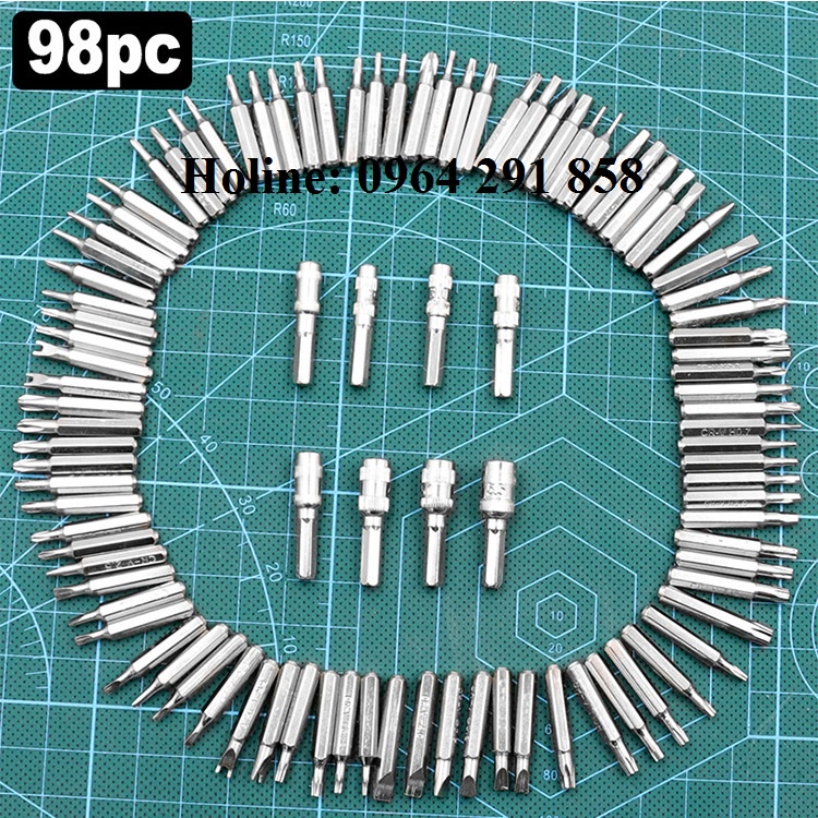 -Với 98 đầu vít khác nhau bộ dụng cụ đảm bảo có thể tương thích với 99.9% các loại ốc trên các đời điện thoại, laptop (điện thoại iPhone 4,5,6,7,8,X,Xs,.. Samsung, Xiaomi, Nokia v.v...