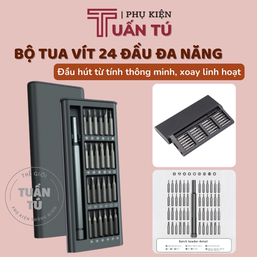 Giới thiệu Bộ tua vít đa năng 24 đầu chất liệu thép từ tính cao cấp không gỉ sửa chữa máy móc, điện tử cỡ nhỏ