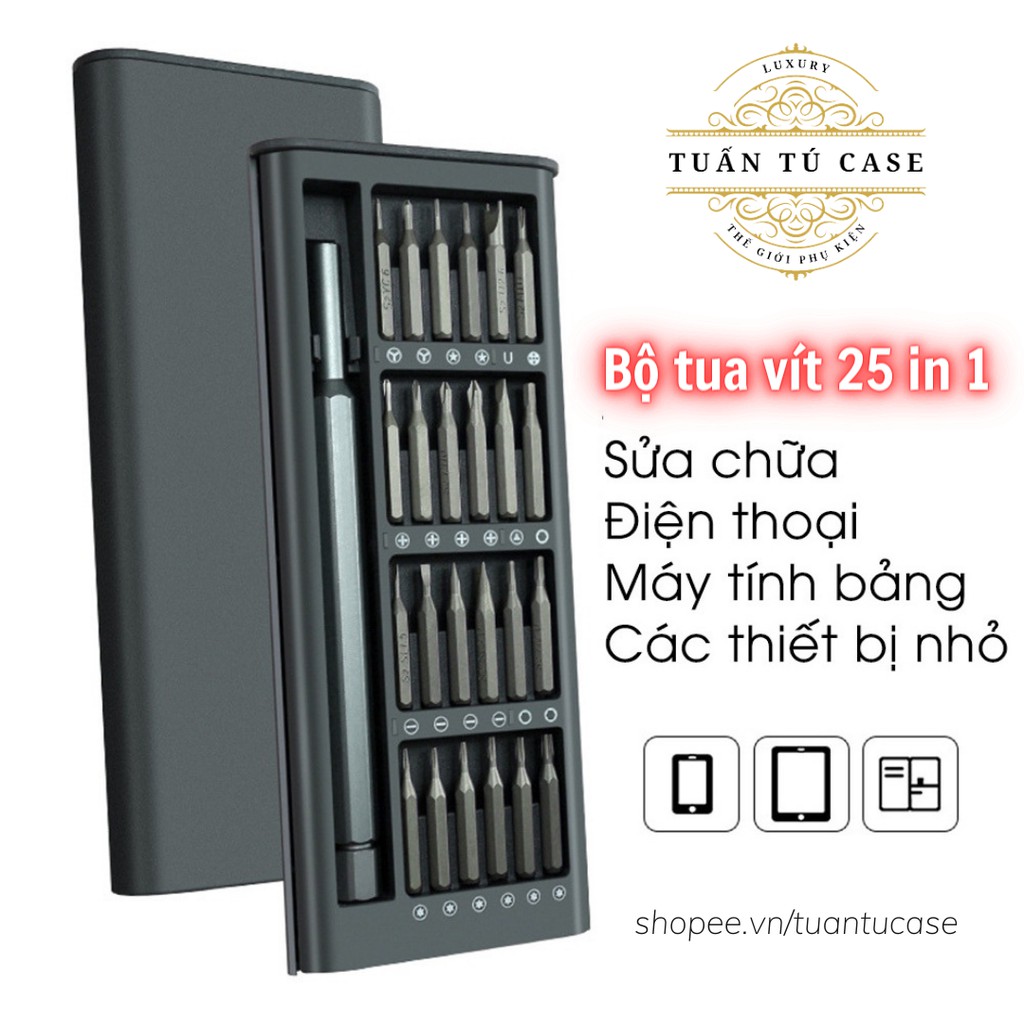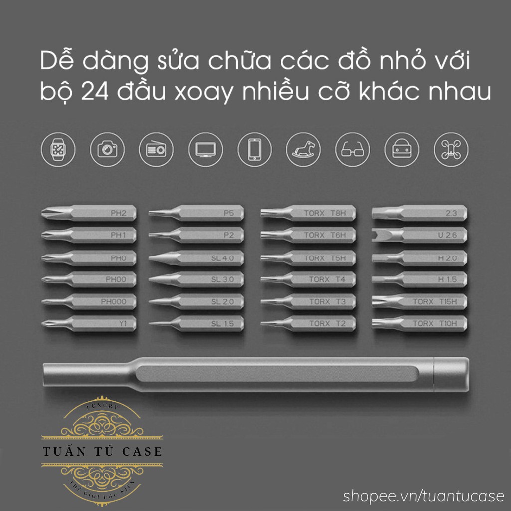Bộ tua vít đa năng 24 đầu chất liệu thép từ tính cao cấp không gỉ sửa chữa máy móc, điện tử cỡ nhỏ