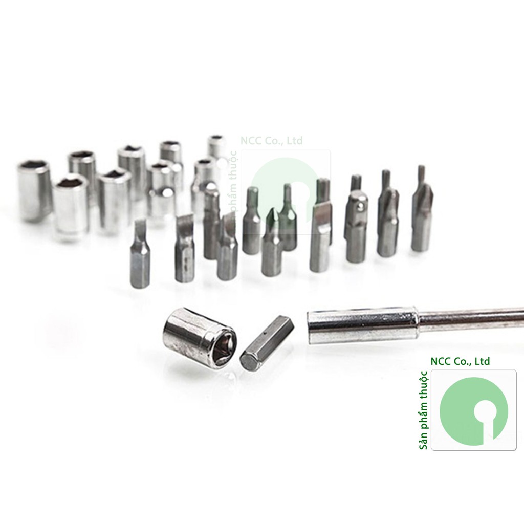 * Bao gồm: Dụng cụ vặn ốc vit + 26 đầu thay đổi theo từng kích cỡ + Hộp đựng
