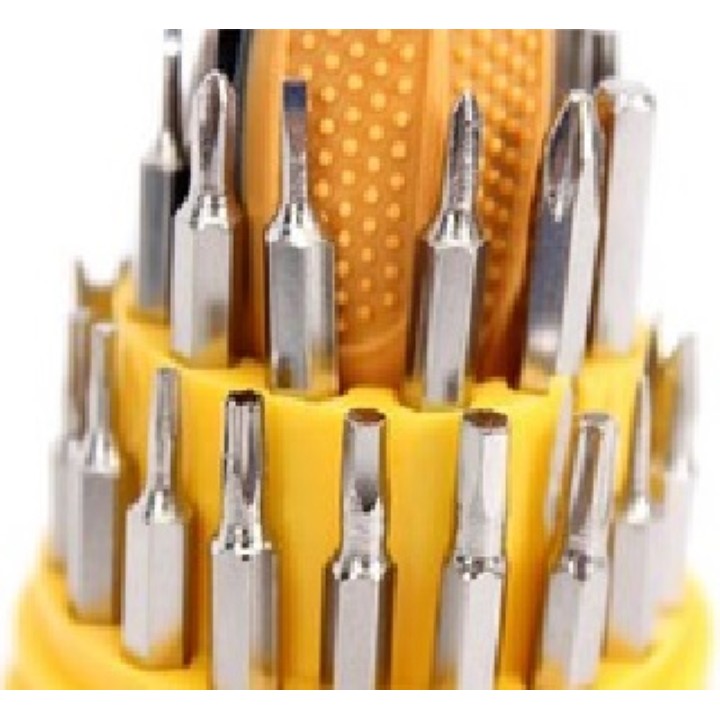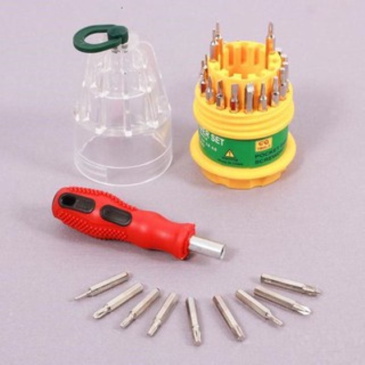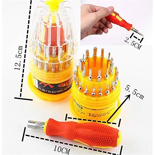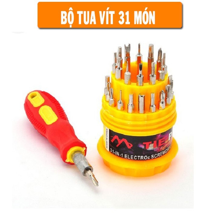 Bộ tua vít 31 đầu đa năng cao cấp với đầu vít được xếp dạng tròn dễ sử dụng. Hộp gồm 31 đầu vít cỡ nhỏ dành cho sửa chữa đồ điện tử cỡ nhỏ như máy vi tính, laptop, điện thoại di động, và các đồ điện tử. Sản phẩm được thiết kế đủ tất cả các loại đầu vít thường dùng trong linh kiện điện tử như đầu dẹt, đầu 2 lỗ, tam giác, lục giác, 3 cạnh, 4 cạnh, 5 cạnh và 6 cạnh. Mỗi dạng đều có đủ các cỡ từ lớn đến nhỏ.