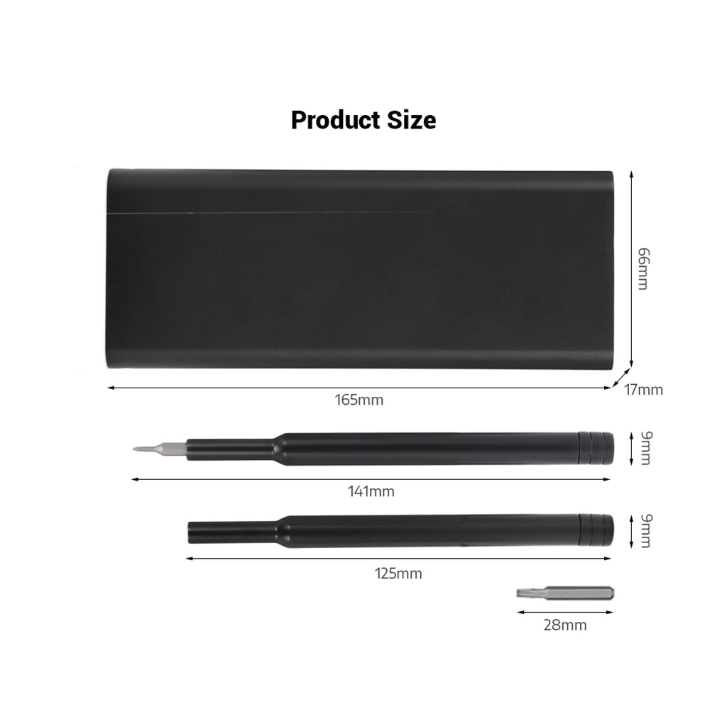 - Hộp đựng và tay cầm của tua vít đều được làm từ chất liệu hợp kim aluminum được xử lý anodize,=> không lo rỉ sét.