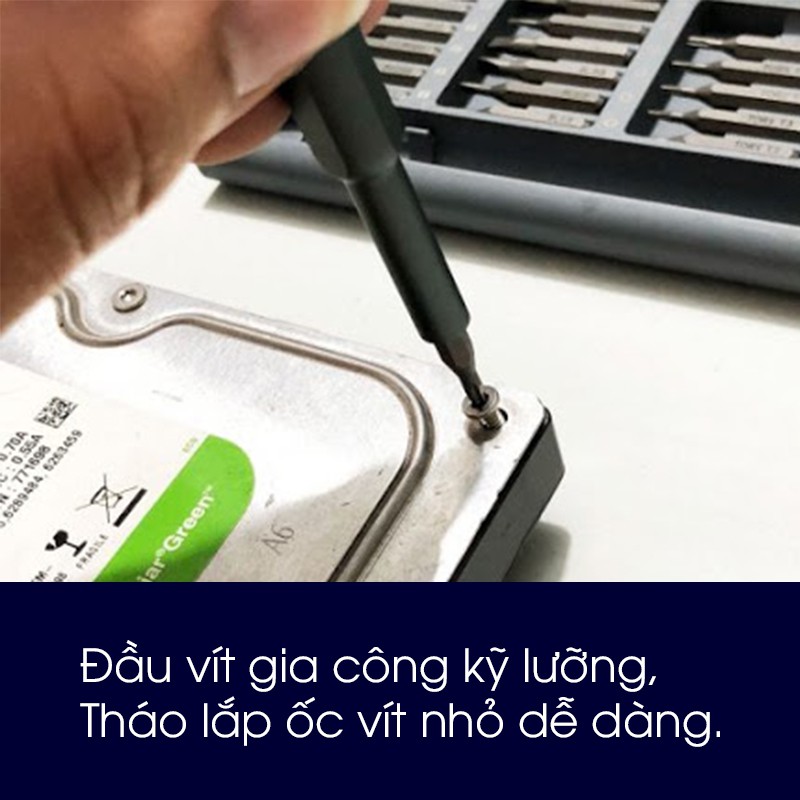 ✔Chất liệu: thép nhậu khẩu HRC 60, hộp kim nhôm => chịu lực tốt, không lo mài mòn, chai đầu vít.