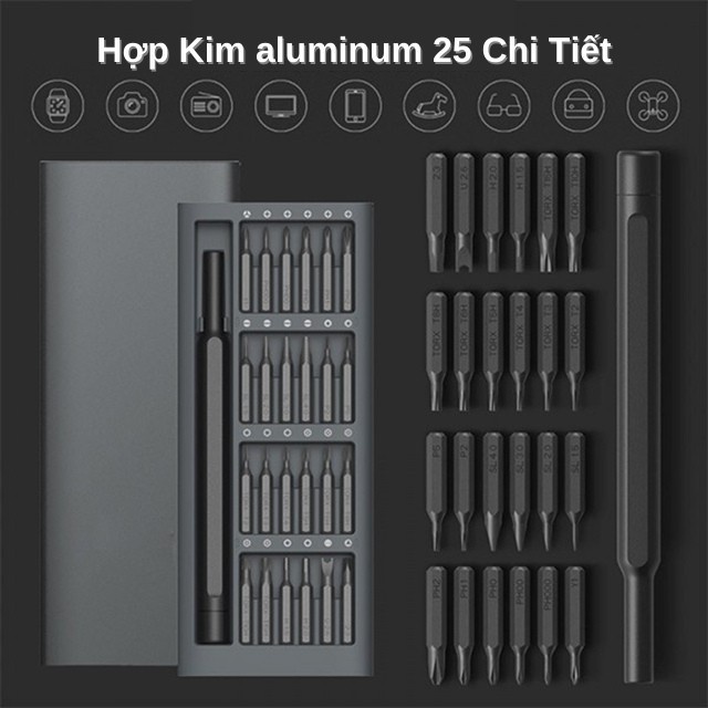 ✔ Bao gồm 24 đầu tua vít với kích cỡ, kiểu dáng khác nhau - cho nhiều mục đích khác nhau như sửa cửa, đồ chơi, điện thoại, máy tính,máy ảnh hay bất cứ đồ dùng gia dụng nào.