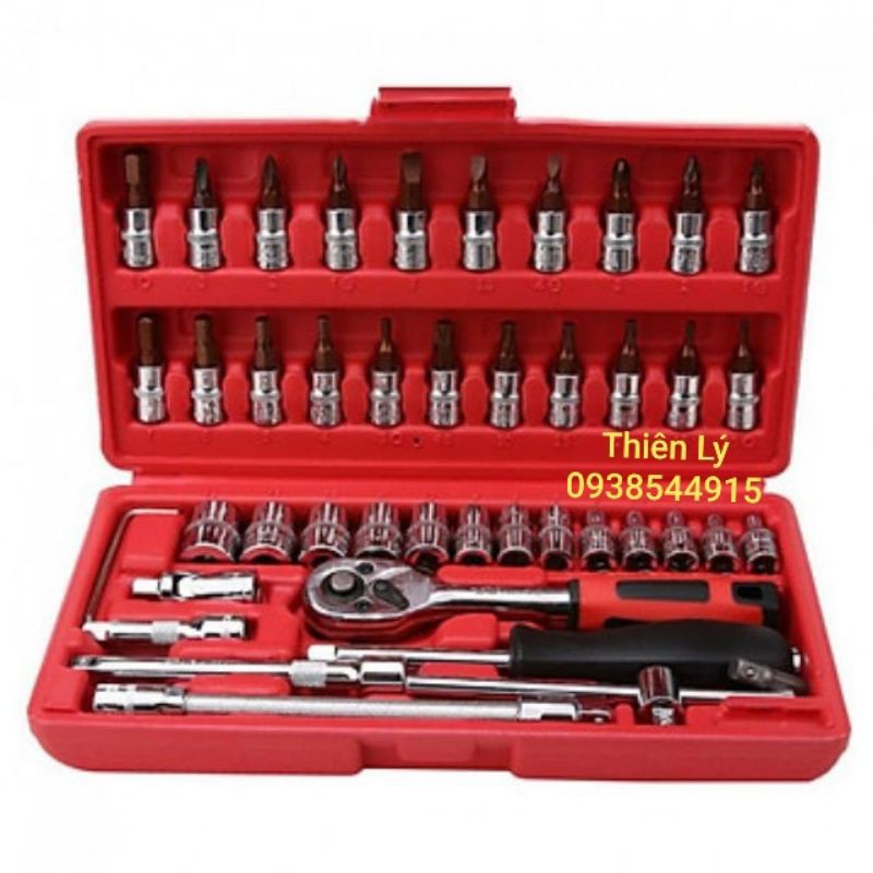 Tên sản phẩm : Bộ Tô Vít,Khẩu Đa Năng 46 Chi Tiết Màu sắc hộp đựng : Đỏ hoặc đen tùy theo đợt hàng.đa số là đỏ.