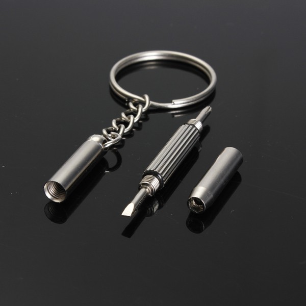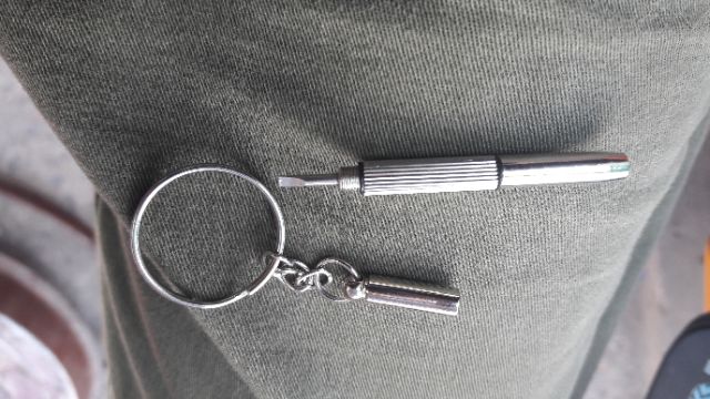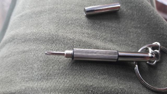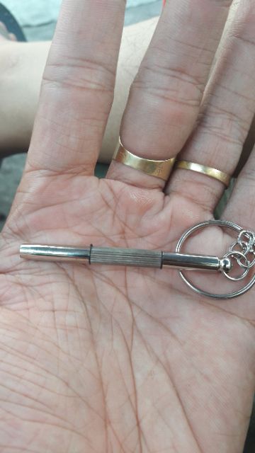 TUA VÍT MINI 2 ĐẦU KIÊM MÓC CHÌA KHÓAĐiểm nổi bật : tua vít có 2 đầu 1 đầu 4 cạnh và 1 đầu 2 cạnh. Với kích thước mini, chiếc tua vít này phù hợp để tháo mở gọng kính, đồng hồ, điện thoại, ...