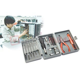 Bộ dụng cụ sửa chữa 24 món gồm: 01 Kềm (17. 5cm), 01 Dao rọc giấy cỡ lớn (16cm), 01 vít bake mini (8.5cm), 01 vít đầu bằng mini (8. 5cm), 01 vít bake (19cm), 01 vít đầu bằng (19cm),...
