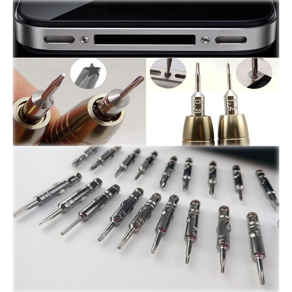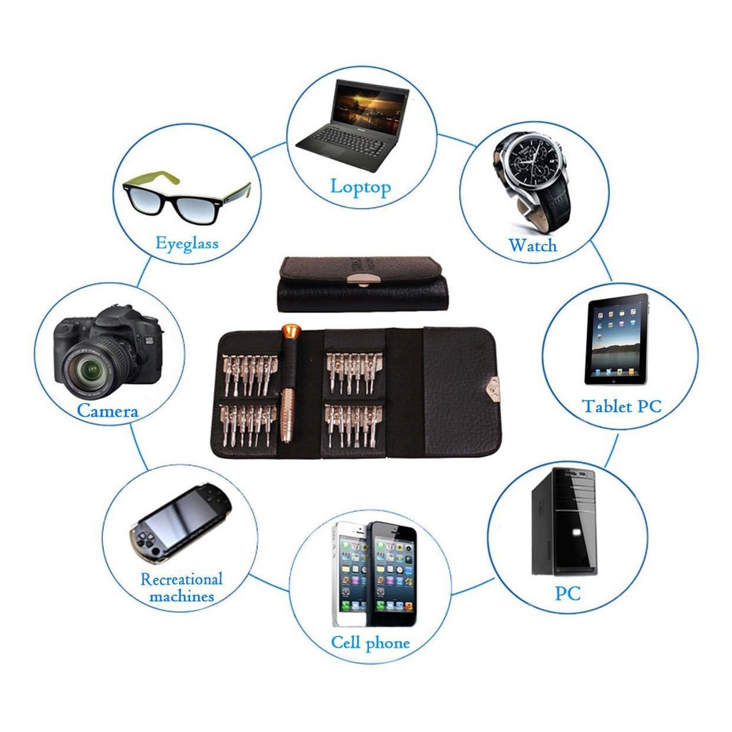 Điện Thoại & Phụ Kiện > Phụ kiện > Ống kính điện thoại || Bộ tua vít sửa điện thoại mắt kính đa năng screwdriver 25 đầu đựng bóp da ChammartCòn hàng