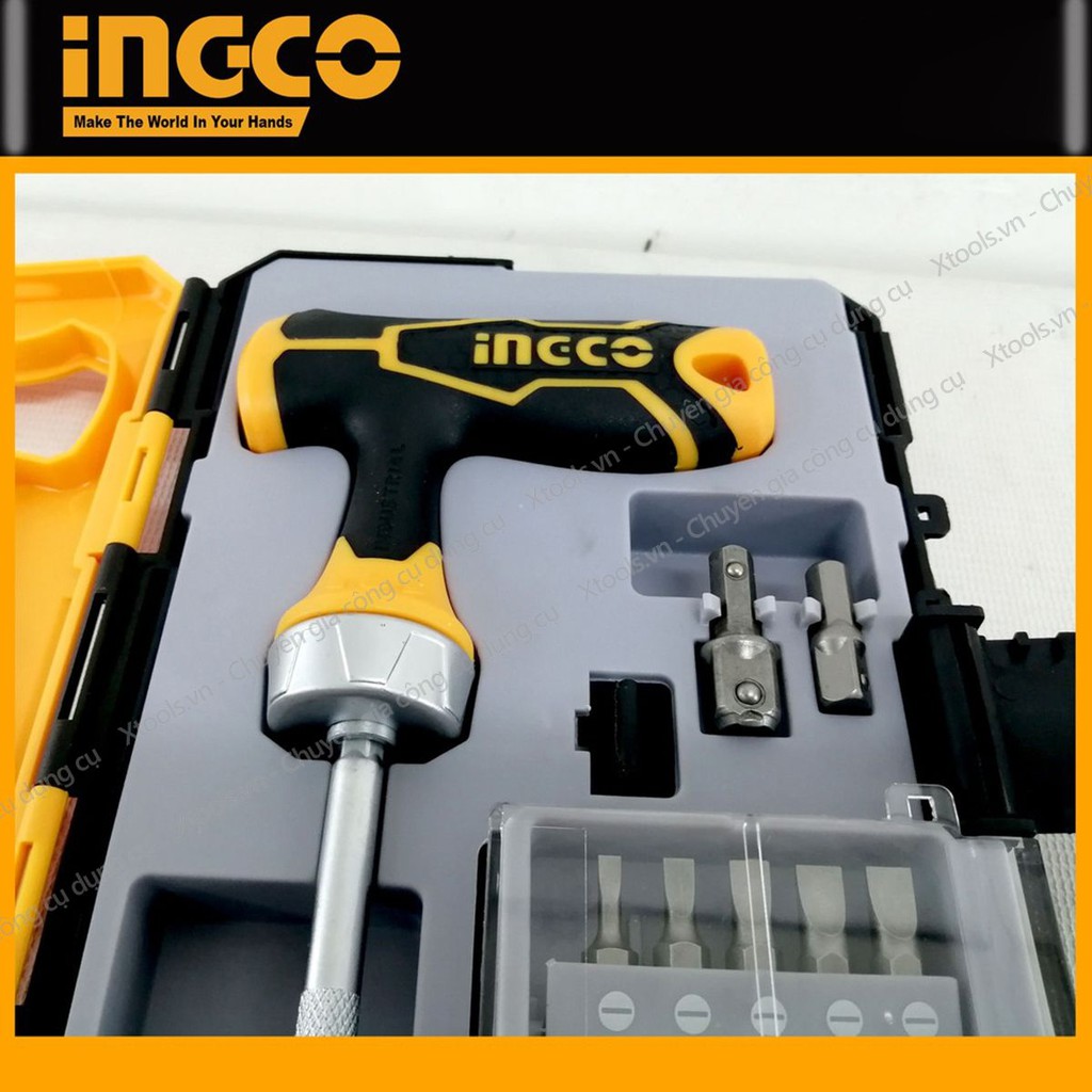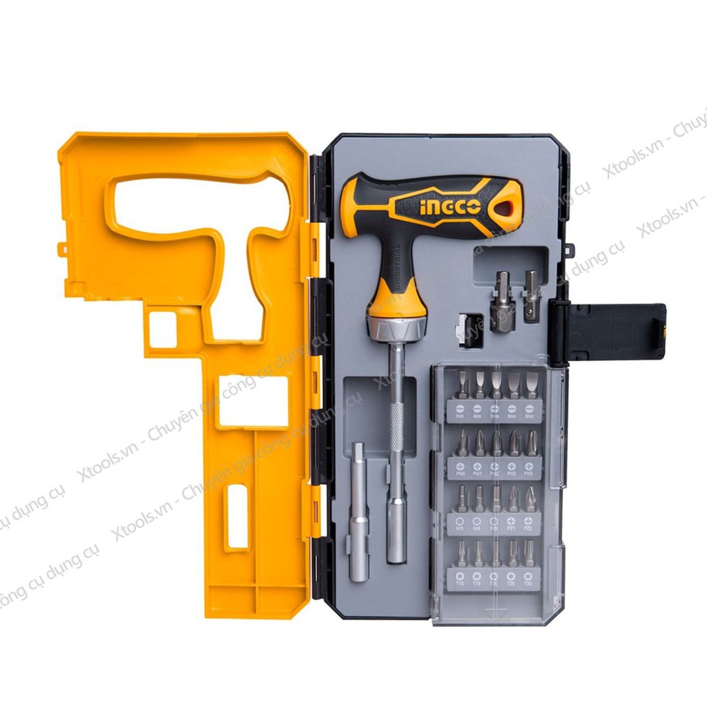 Bộ tua vít tay cầm chữ T 25 chi tiết đa năng INGCO HKSDB0258 đóng mở 2 chiều tự động có nam châm sửa điện thoại máy tính