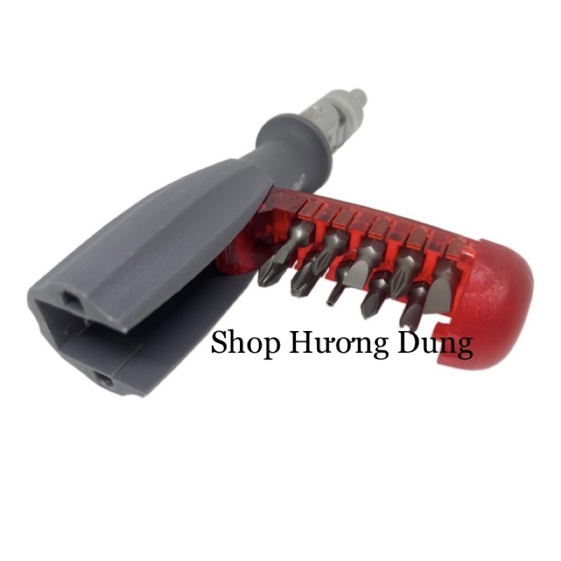 Bên trong thân chuôi có chứa các đầu mũi vít chân lục giác 1/4" (cộng, trừ, hoa thị, 2 cạnh)