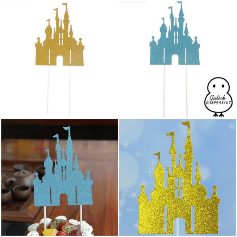 Nhà cửa & Đời sống > Dụng cụ nhà bếp > Dụng cụ nướng & trang trí bánh || Túi 10 Hình cắm giấy lâu đài kim tuyến trang trí bánh kem, phụ kiện trang trí sinh nhật, Topper cakeCòn hàng