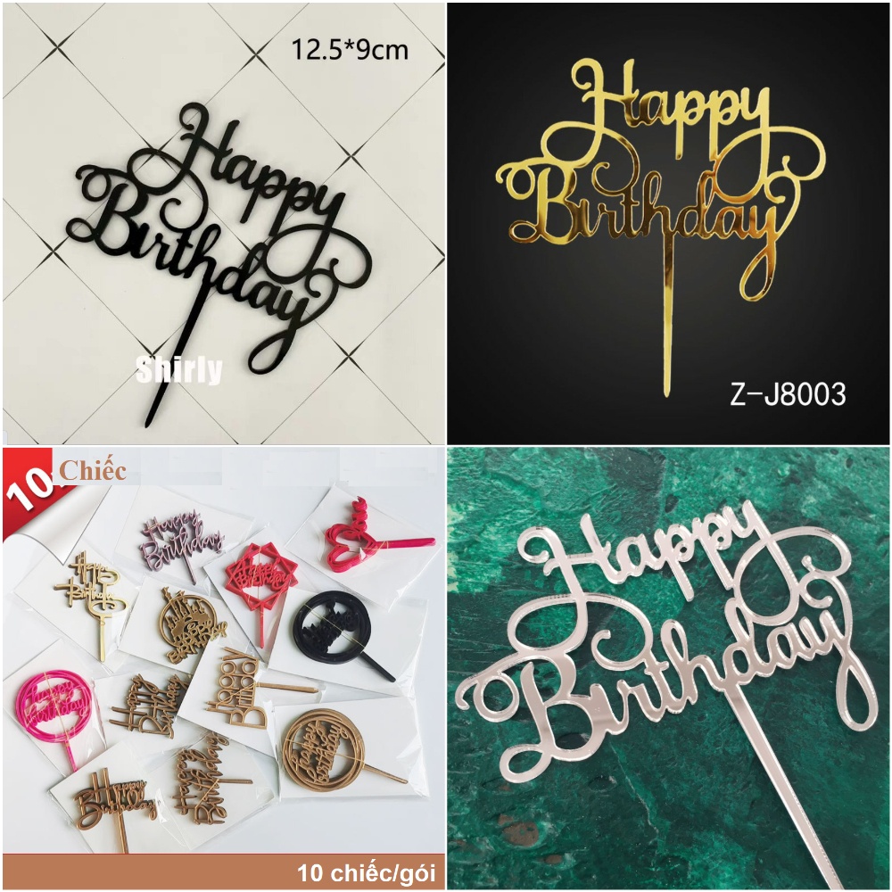Túi 10 meka chữ Happy Birthday trang trí bánh sinh nhật, mica cắm bánh sinh nhật- Lưu ý: Quí khách nhớ bóc màng mỏng chống xước trên sản phẩm trước khi sử dụng nhé.!