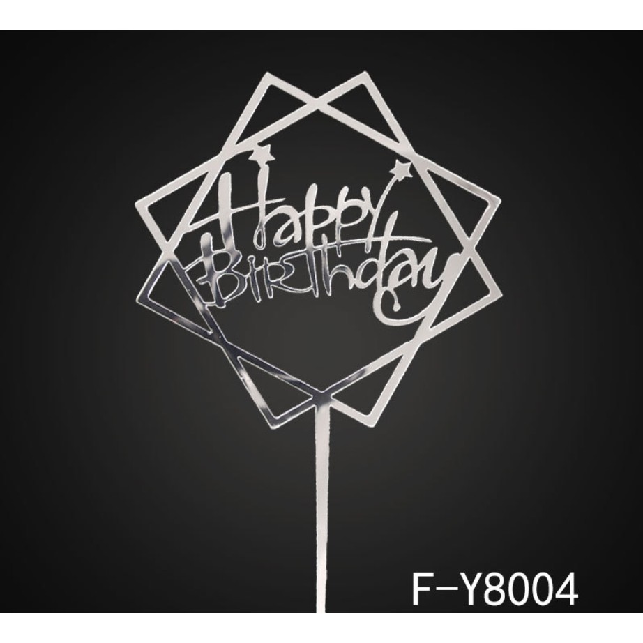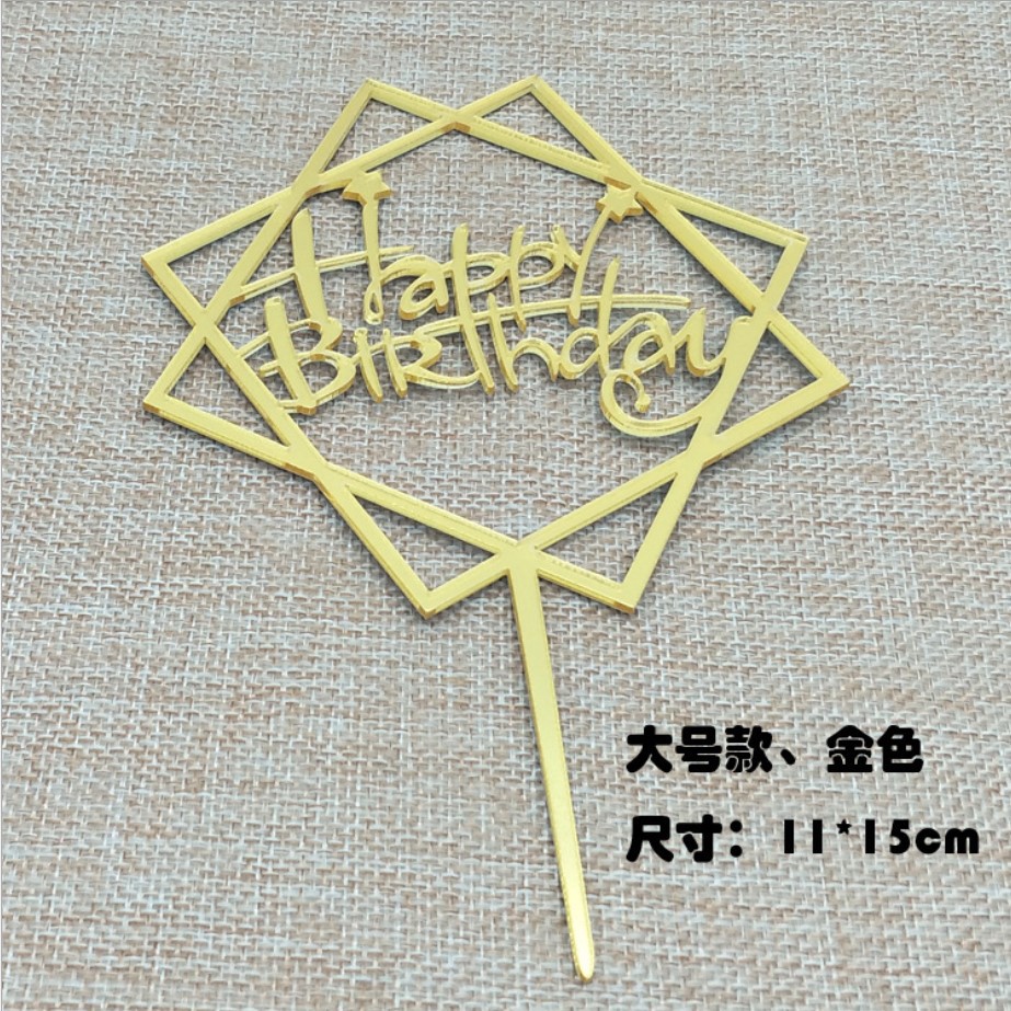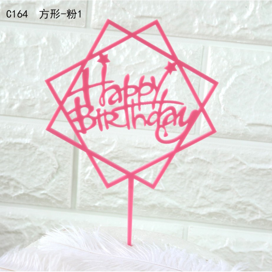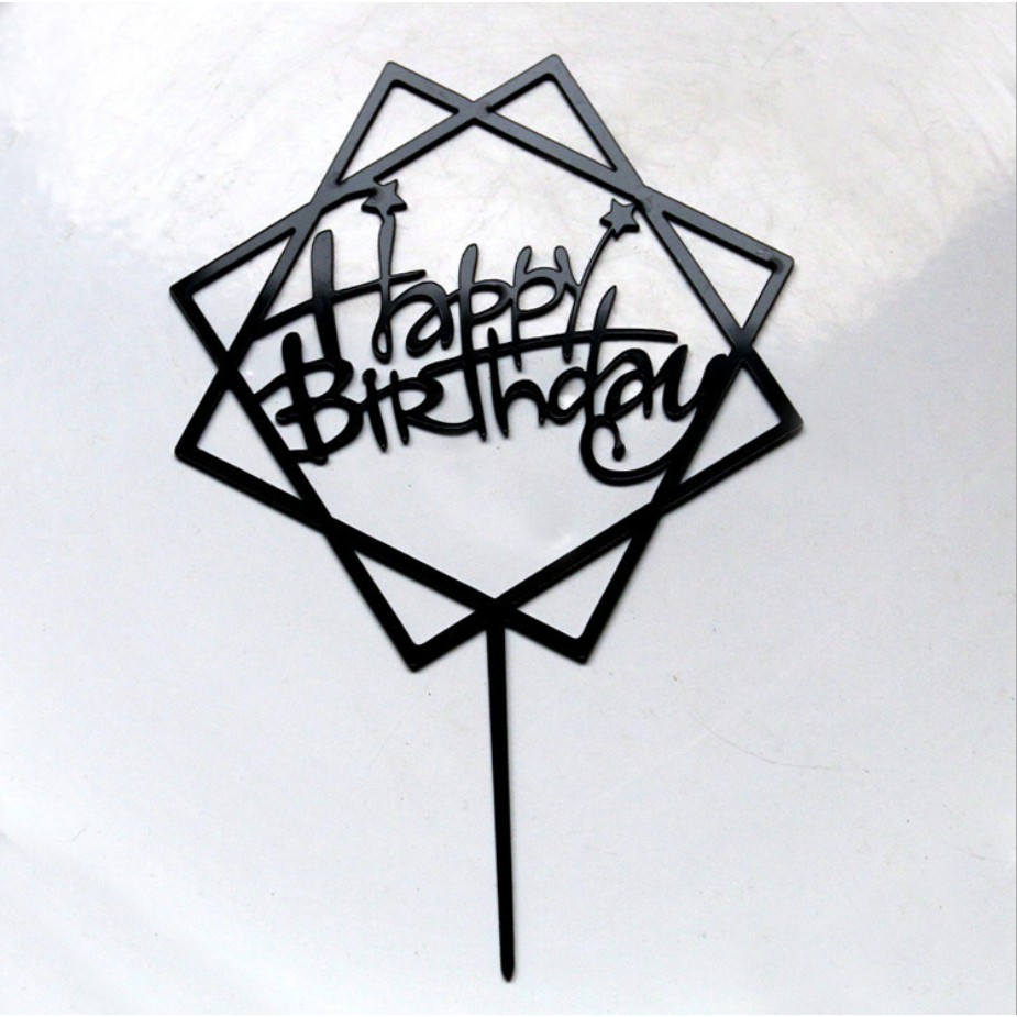 Túi 10 meka Vuông Happy Birthday trang trí bánh sinh nhật, mica cắm bánh sinh nhật- Lưu ý: Quí khách nhớ bóc màng mỏng chống xước trên sản phẩm trước khi sử dụng nhé.!