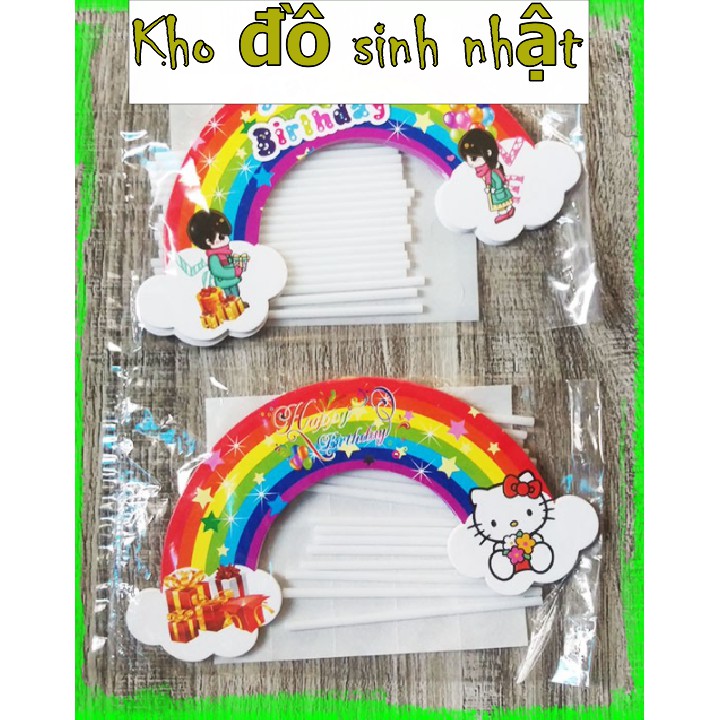 Túi 10 topper cầu vồng trang trí bánh kem, trang trí bánh sinh nhật, hình cắm cầu vồng