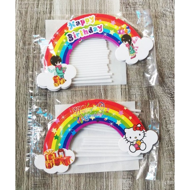 Túi 10 topper cầu vồng trang trí bánh kem, trang trí bánh sinh nhật, hình cắm cầu vồng- Dùng cắm trang trí lên bánh kem, bánh sinh nhật các loại- Kích thước: Cao 18Cm
