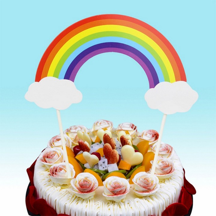 Giới thiệu Túi 10 topper cầu vồng trang trí bánh kem, trang trí bánh sinh nhật, hình cắm cầu vồng