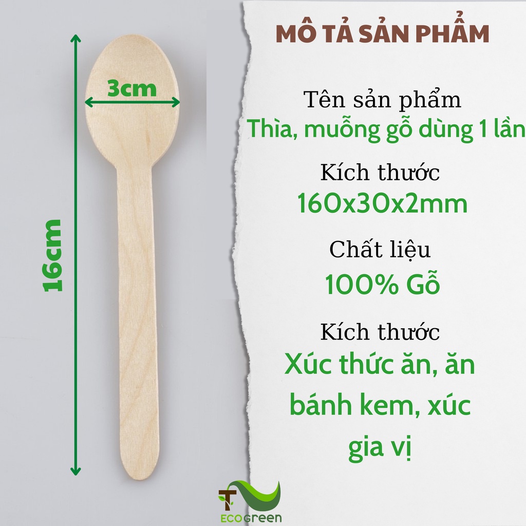 - Thìa gỗ dùng một lần là sản phẩm thay thế bền vững cho thìa nhựa dùng một lần.