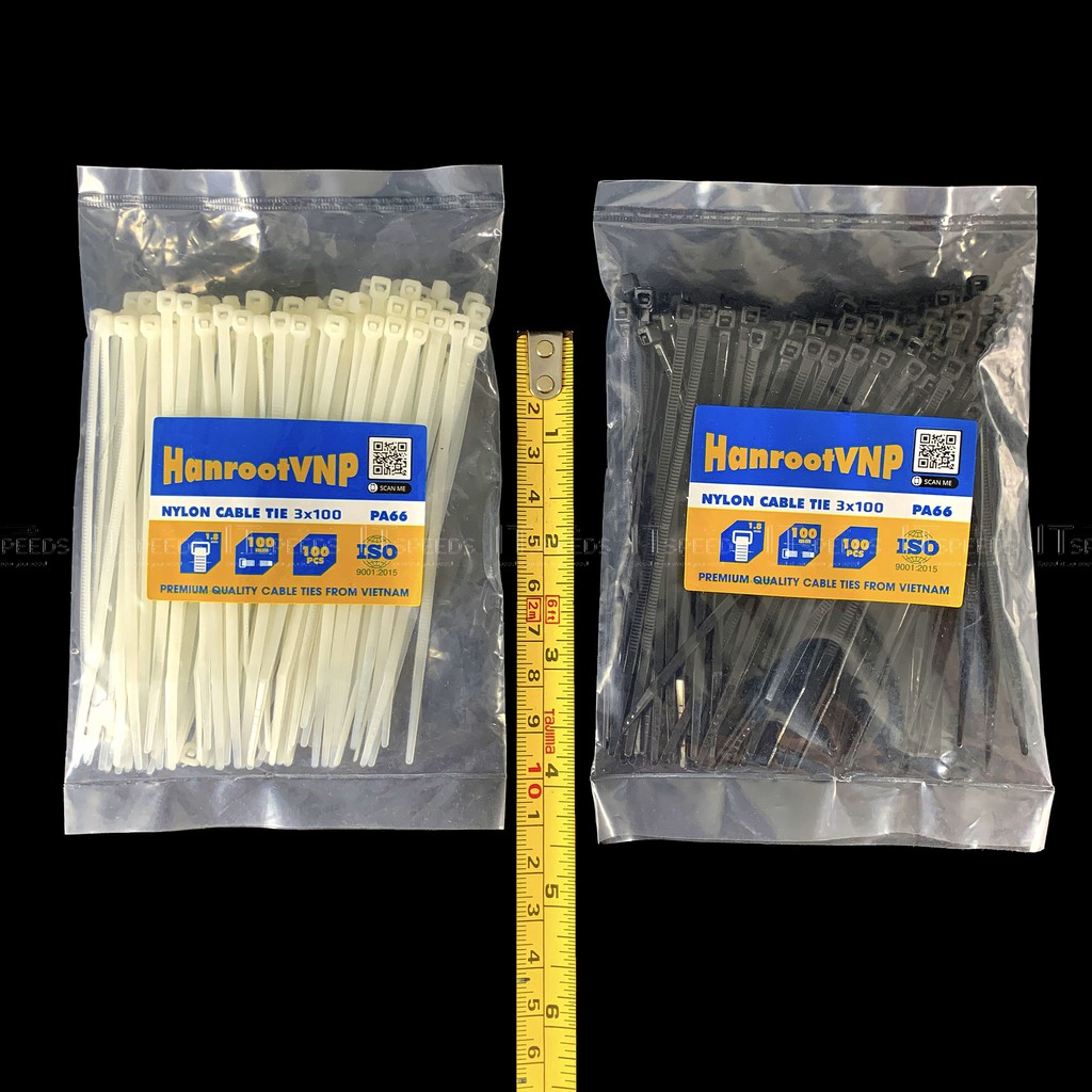 Túi 100 Dây Rút Nhựa, Dây Thít Đen - Trắng, Dài 100mm (10cm, 1 Tấc) Chất Liệu: Nhựa PA66, Bảng 2.5 Mm