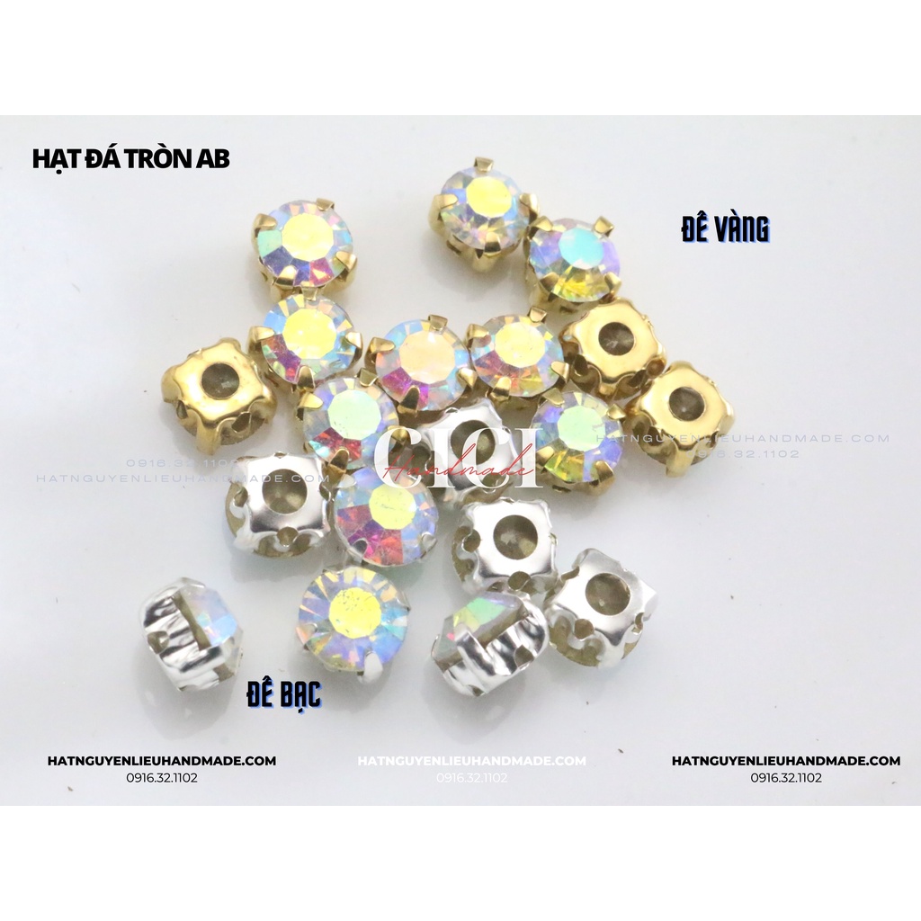 Túi 100 Hạt đá tròn màu AB xà cừ đế trắng/vàng có gắn đế lỗ khâu Cici Handmade chuyên hạt đá hạt pha lê hạt cườm hạt