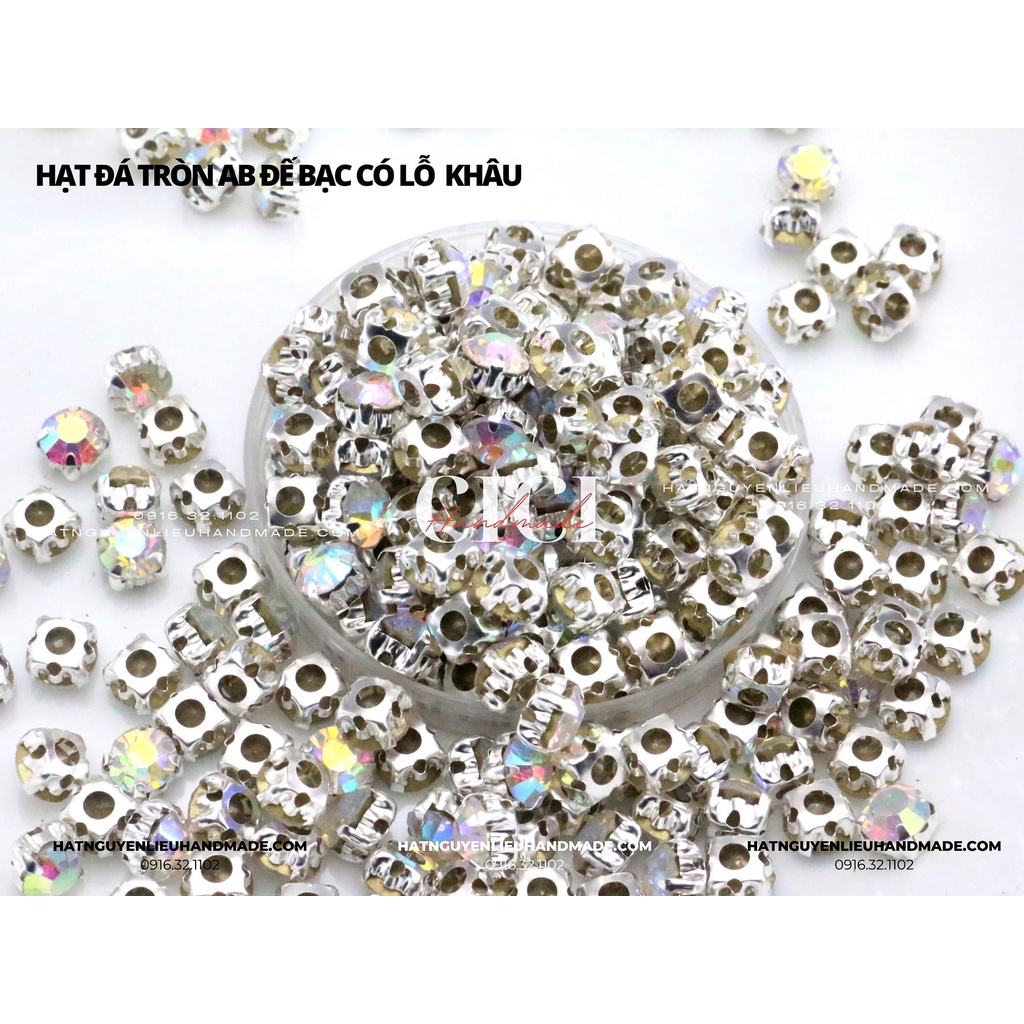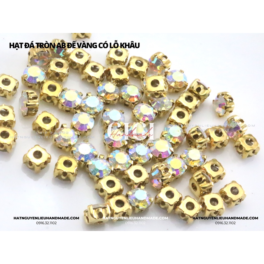 Sở thích & Sưu tầm > Dụng Cụ May Vá || Túi 100 Hạt đá tròn màu AB xà cừ đế trắng/vàng có gắn đế lỗ khâu Cici Handmade chuyên hạt đá hạt pha lê hạt cườm hạtCòn hàng