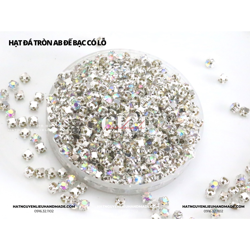 Giới thiệu Túi 100 Hạt đá tròn màu AB xà cừ đế trắng/vàng có gắn đế lỗ khâu Cici Handmade chuyên hạt đá hạt pha lê hạt cườm hạt