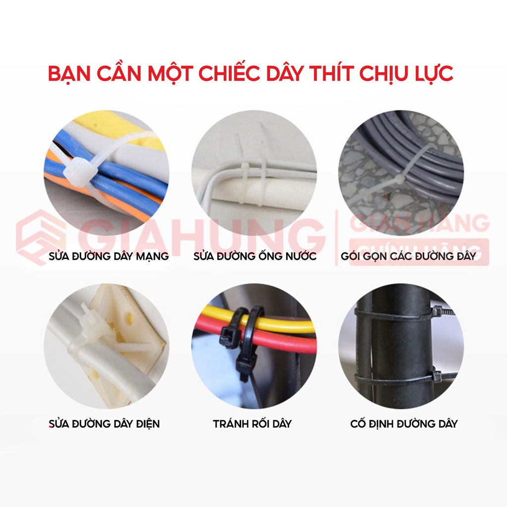 ➣ Dây rút nhựa hay còn gọi là dây thít nhựa được sản xuất và phân phối trên thị trường bởi GIAHUNGPRO. Lý do dây rút nhựa được ưa chuộng trong đời sống và có thể thay thế nhiều loại dây khác cũng dùng để buộc như dây thun, dây cao su hay dây vải do có độ bền và dẻo dai từ polyme nên không dễ đứt như những dây khác