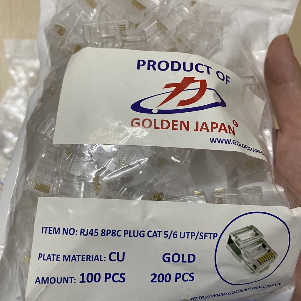[Túi 100c] Hạt mạng Golden Japan Cat5 RJ45,hàng Cao cấp chuyên dụng lõi tiếp xúc bằng đồng