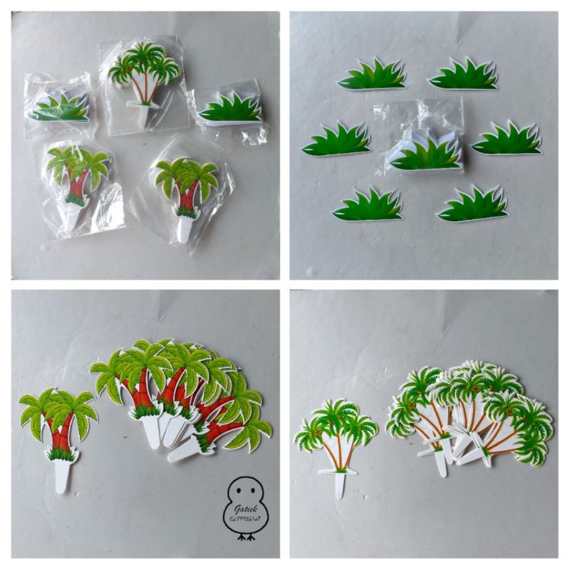 Túi 20 thẻ cắm cây dừa, đám cỏ trang trí bánh kem - set cắm giấy trang trí bánh sinh nhật