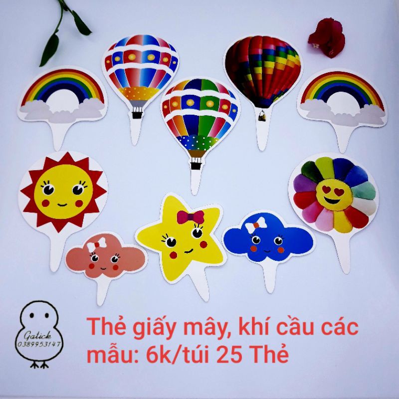 Túi 25 thẻ cắm giấy các mẫu hot trang trí bánh kem, topper cake