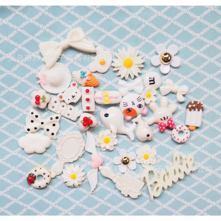 Túi 30 charm trang trí màu trắng cho ốp điện thoại, kẹp tóc, DIY