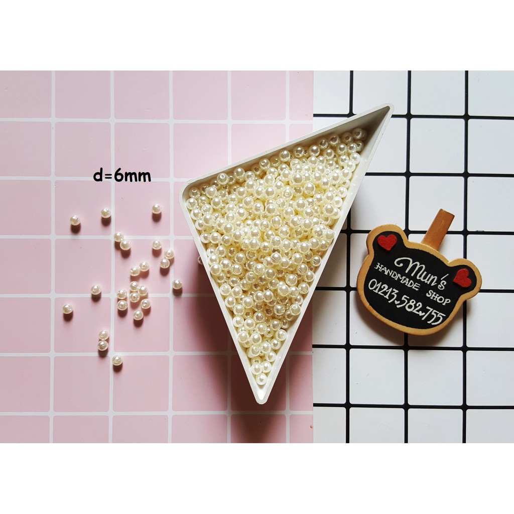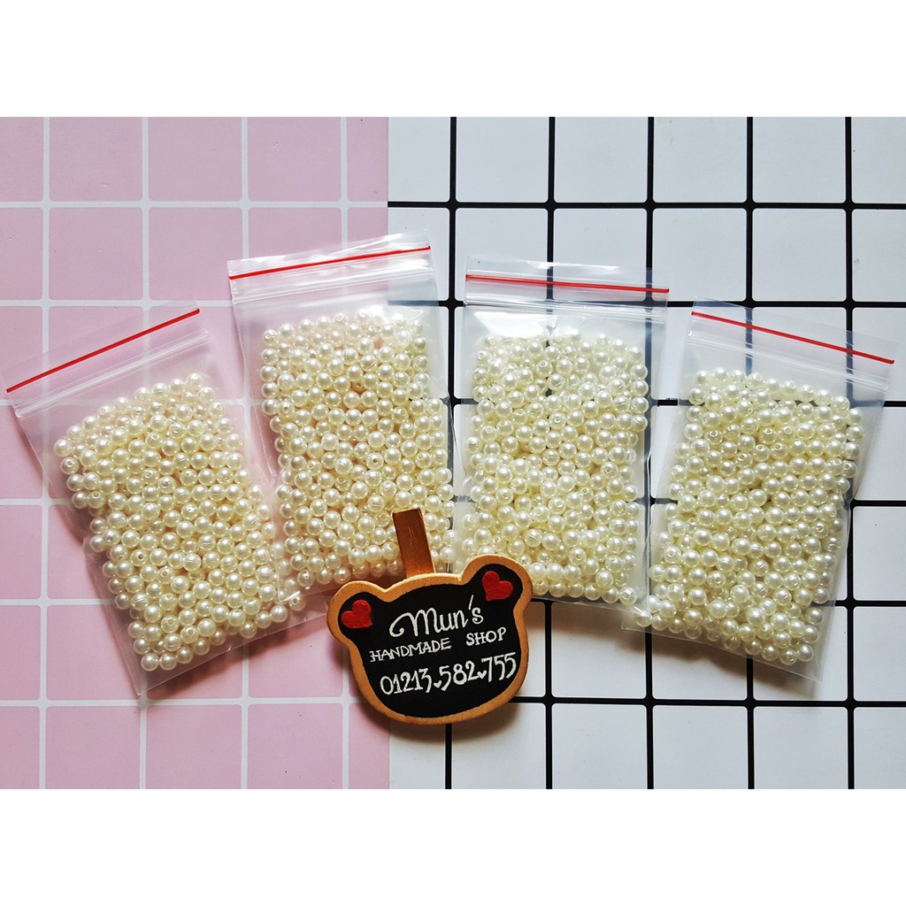 Túi 30gr hạt ngọc trai nhựa trắng/đen/kem/vàng bóng - size 6mm (6 ly) làm nhụy hoa