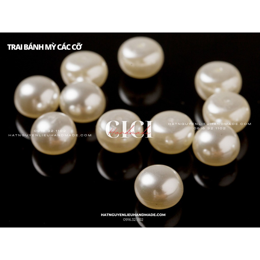 Sở thích & Sưu tầm > Dụng Cụ May Vá || Túi 5-10 hạt nhựa trai bánh mì màu kem, trai dẹt không lỗ Cici Handmade nguyên liệu đính kết hạt cườm pha lêCòn hàng