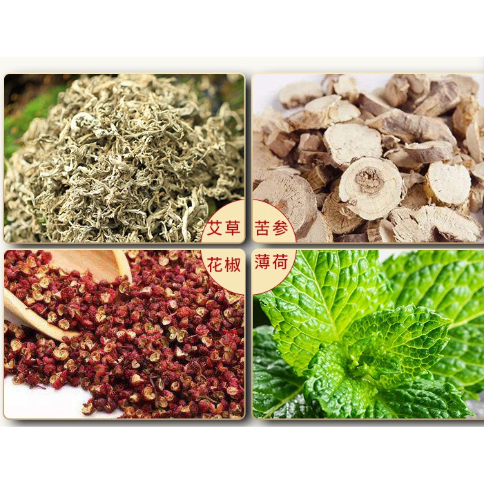 Thành phần bao gồm lá ngải, khổ sâm, bạc hà, hoa ớt