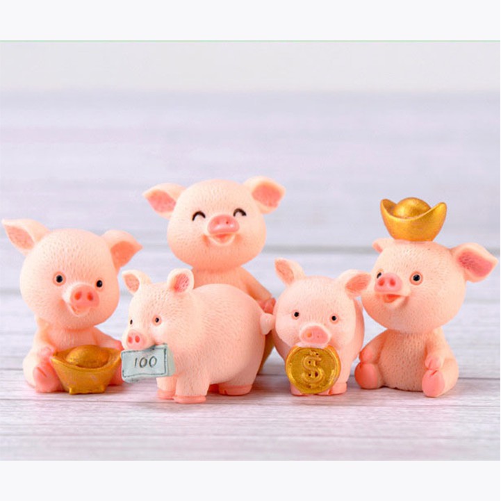 Túi 5 lợn vàng trang trí bánh sinh nhật, topper cake- Dùng để trang trí bánh sinh nhật, bánh sinh nhật, bánh thạch rau câu ....