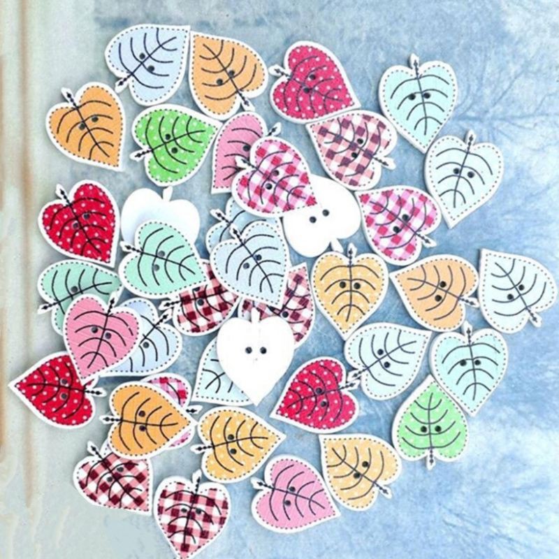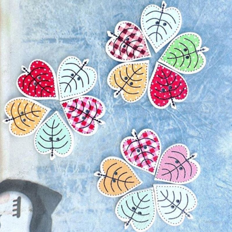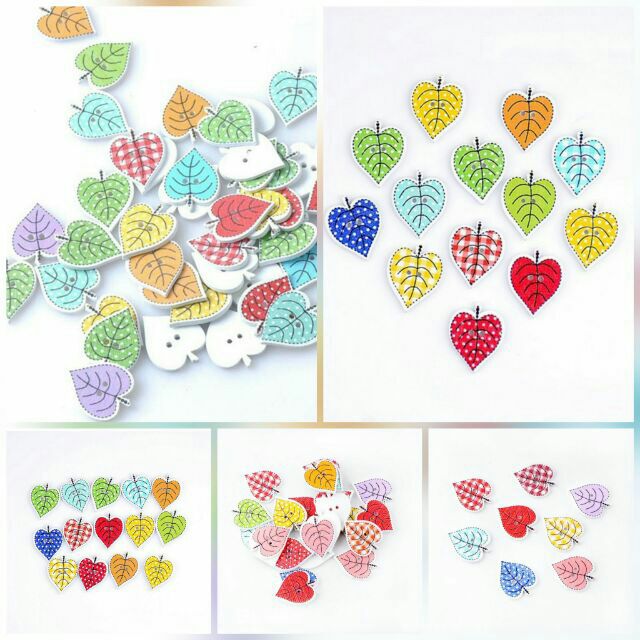 Sở thích & Sưu tầm > Dụng Cụ May Vá || Túi 5 nút gỗ chiếc lá trang trí thiệp, sổ, scrapbookCòn hàng