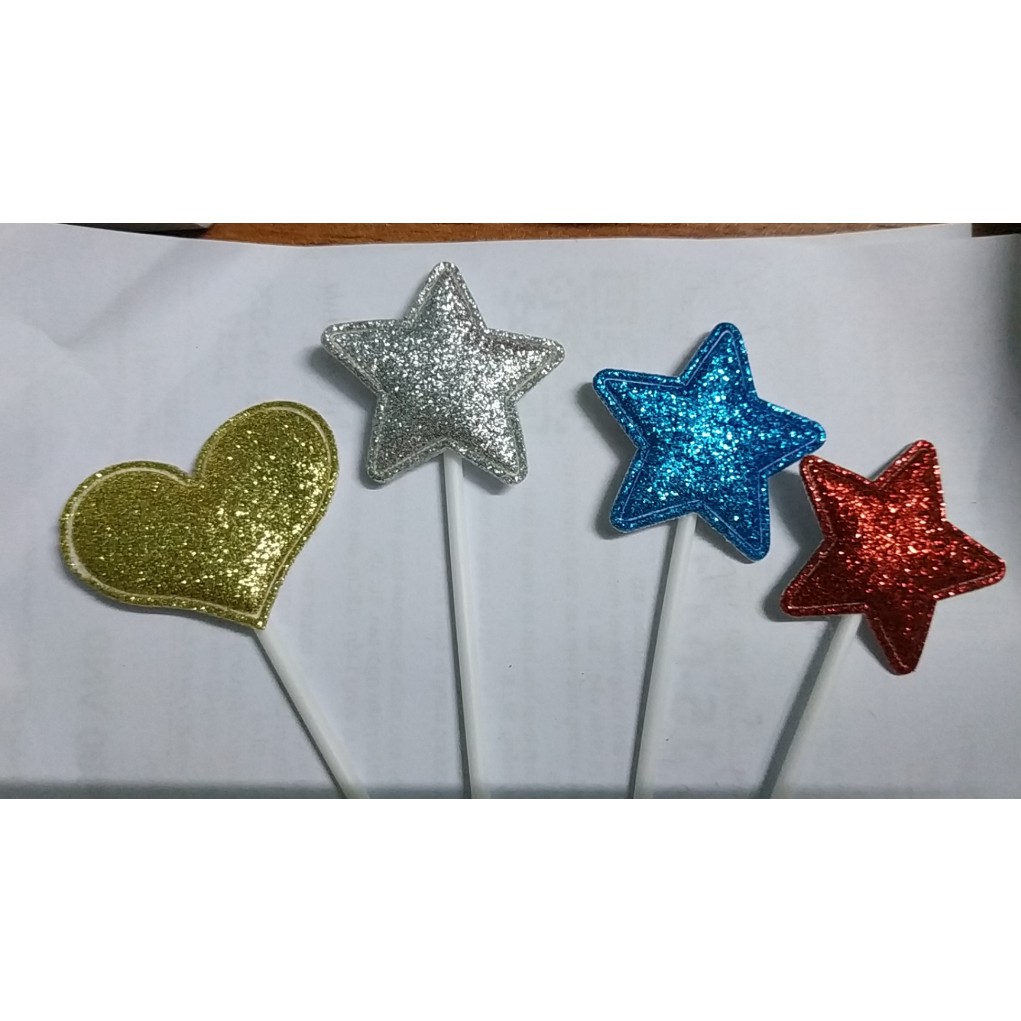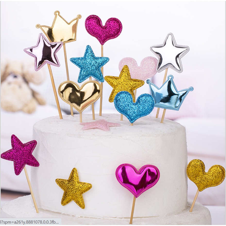 Túi 5 que cắm tim sao trang trí bánh kem, trang trí bánh sinh nhật, que cắm tim sao