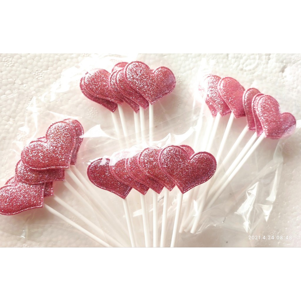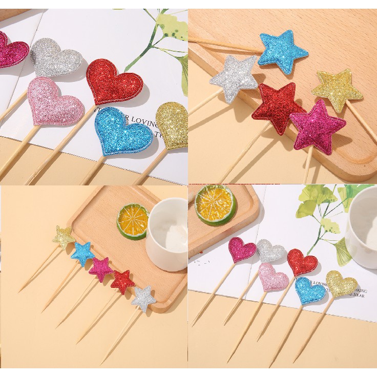 Giới thiệu Túi 5 topper que gỗ tim sao NHŨ cắm bánh sinh nhật, trang trí bánh sinh nhật, topper cake