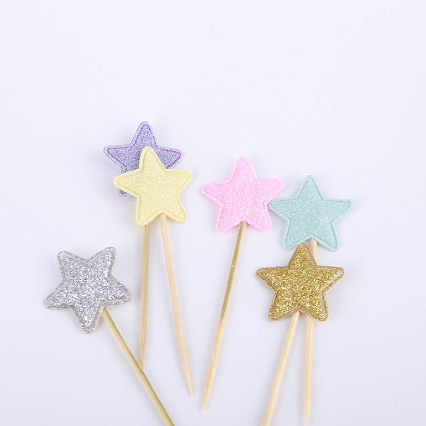 Túi 5 topper que gỗ nhũ cắm bánh sinh nhật, trang trí bánh sinh nhật, topper cake- Kích thước: Cao 11Cm