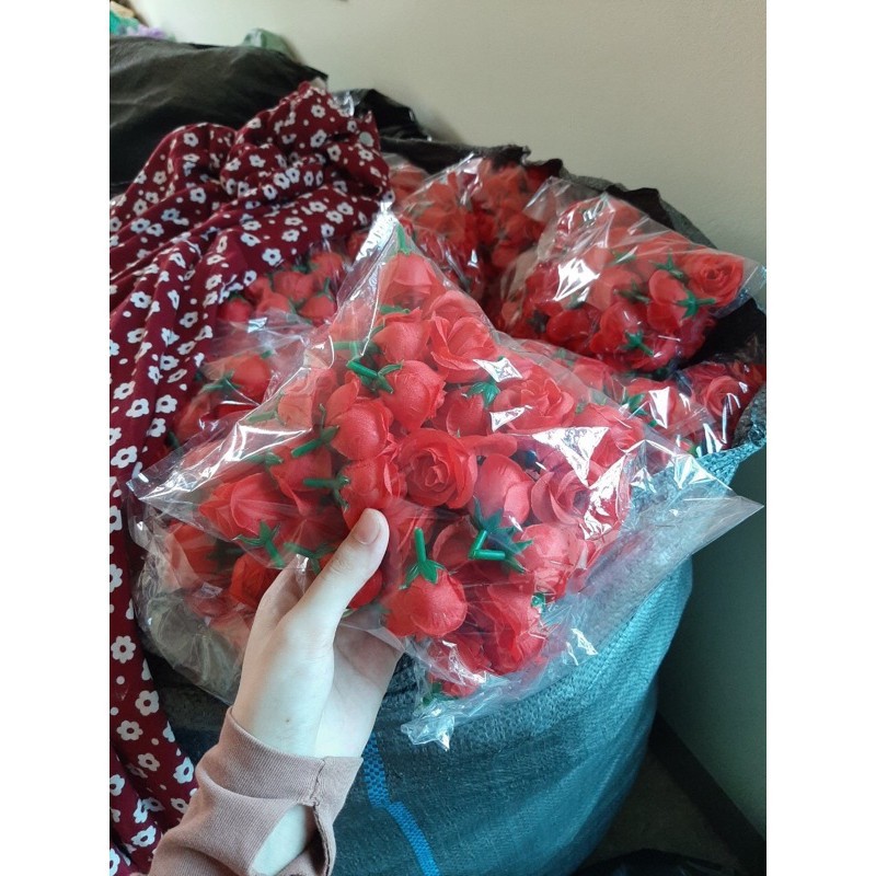 Túi 50 đầu bông hồng vải,kích thước bông 3,5cmCó túi bán lẻ 10 bông và túi to 50 bông