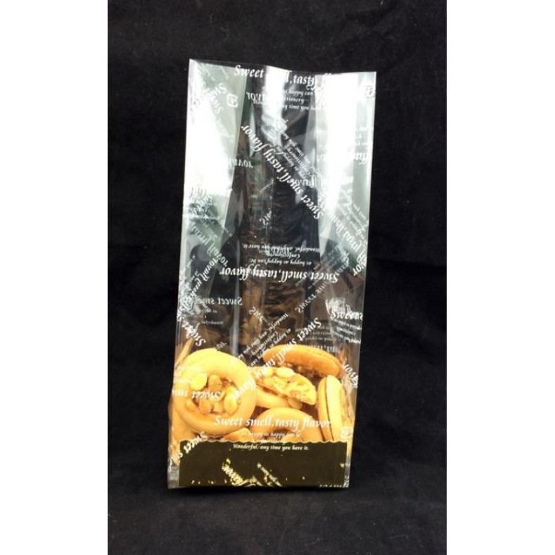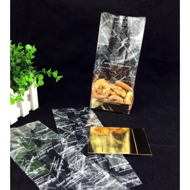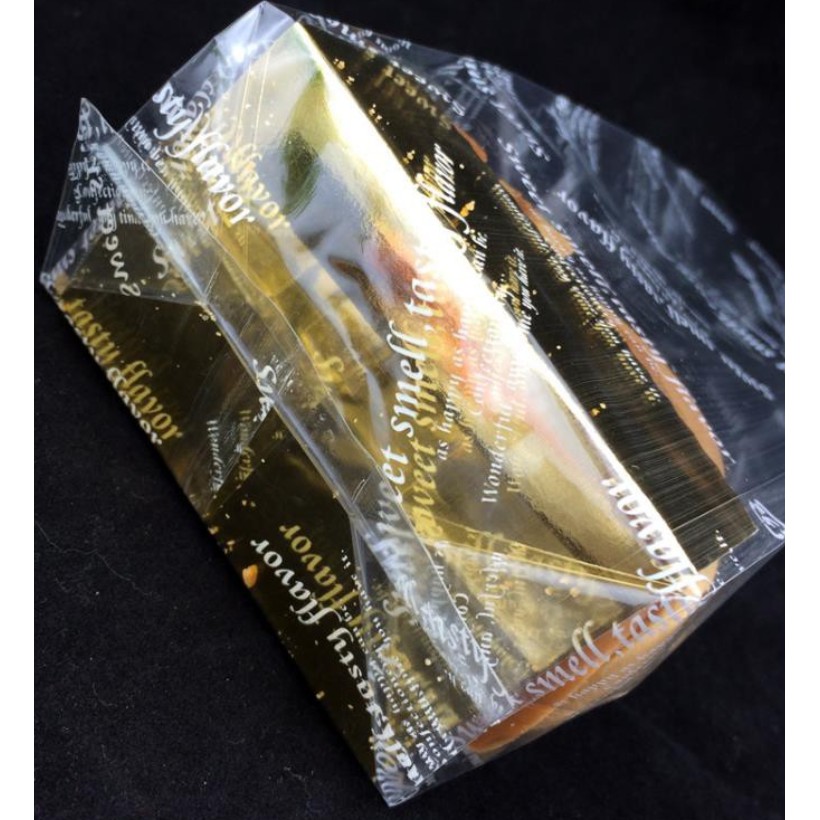 👉🏻 Túi đựng bánh kẹo chất liệu inlon trong veo in chữ Anh màu trắng kèm đế giấy vàng óng ánh, có thể đựng nhiều thể loại thực phẩm nhìn rất sang👉🏻 Kích thước: 23*8.5*6cm (200gr tùy loại)