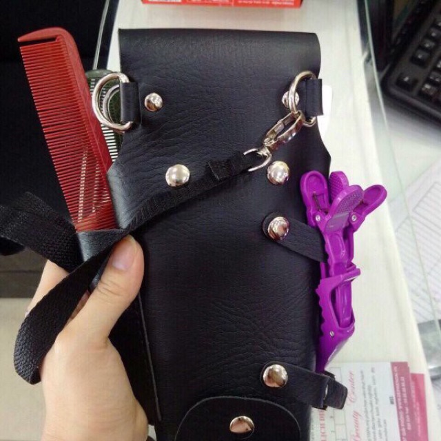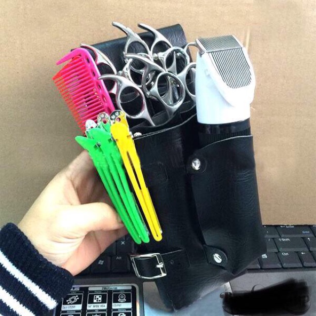 Sản phẩm túi đựng kéo, bao da đựng kéo được thiết kế bằng chất da trơn, màu đen, có thể đựng được nhiều kéo lược và thậm chí là các loại tông đơHình ảnh được chụp thực tế
