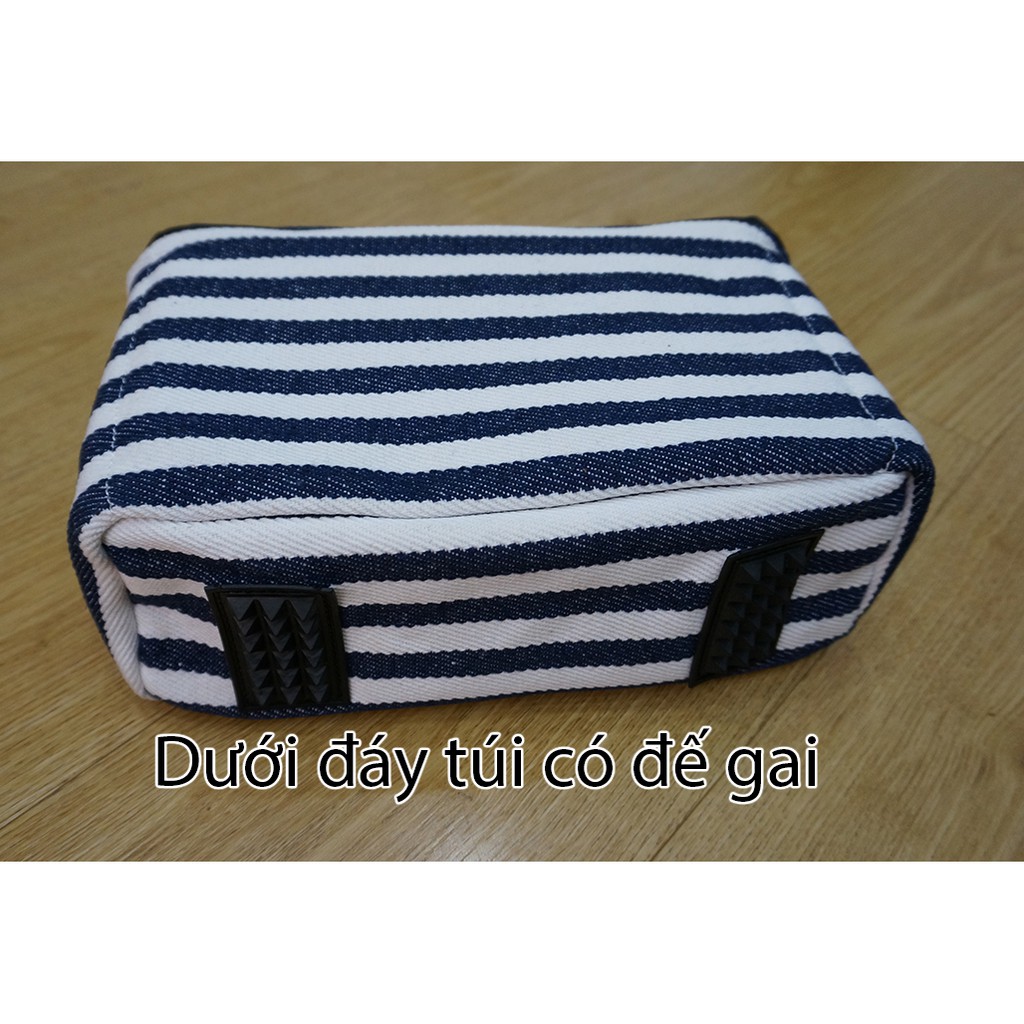Túi bảo vệ máy ảnh có quai xáchKích thước: ngang 26cm* cao 16cm * sâu 10cm. Có thể để được 1 body kèm 2 lens và phụ kiện.