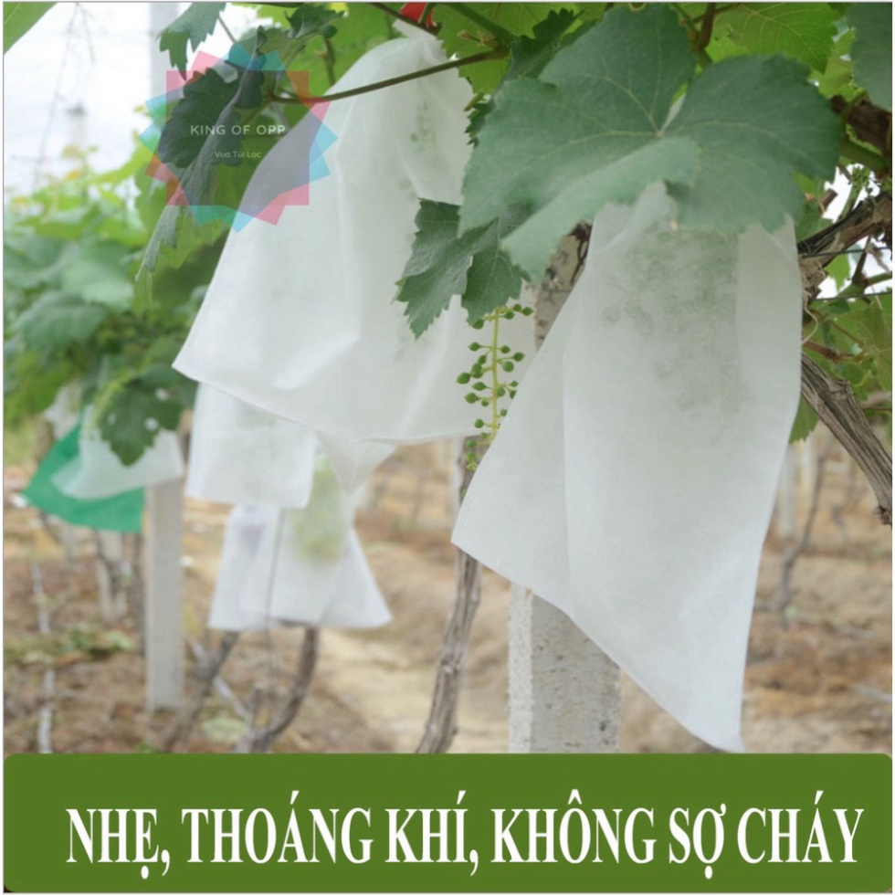 - Túi được làm bằng chất liệu vải không dệt, thấm nước nhưng vẫn đảm bảo độ thoát khí cho trái.