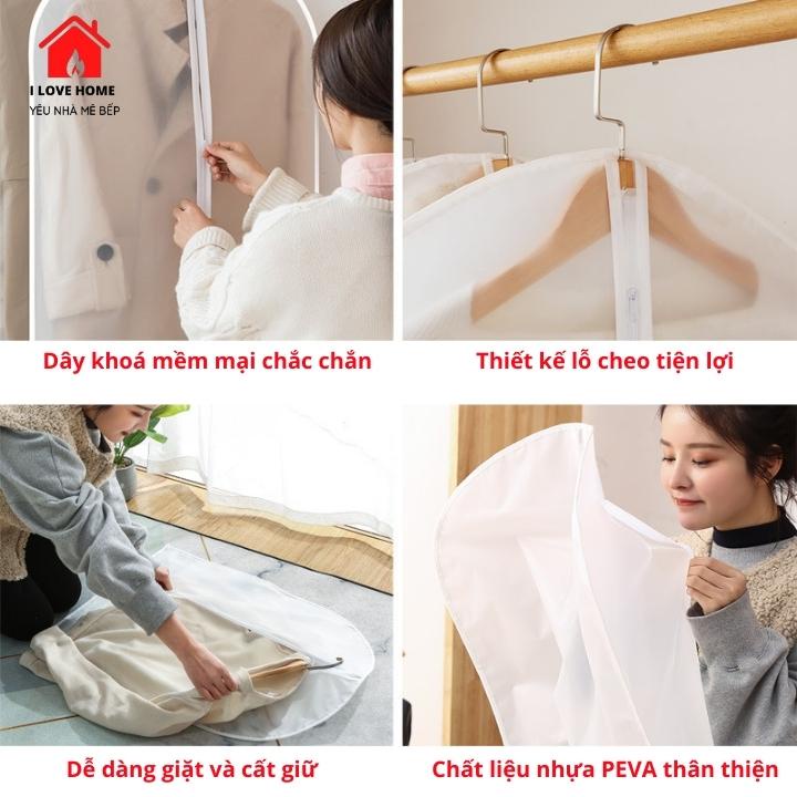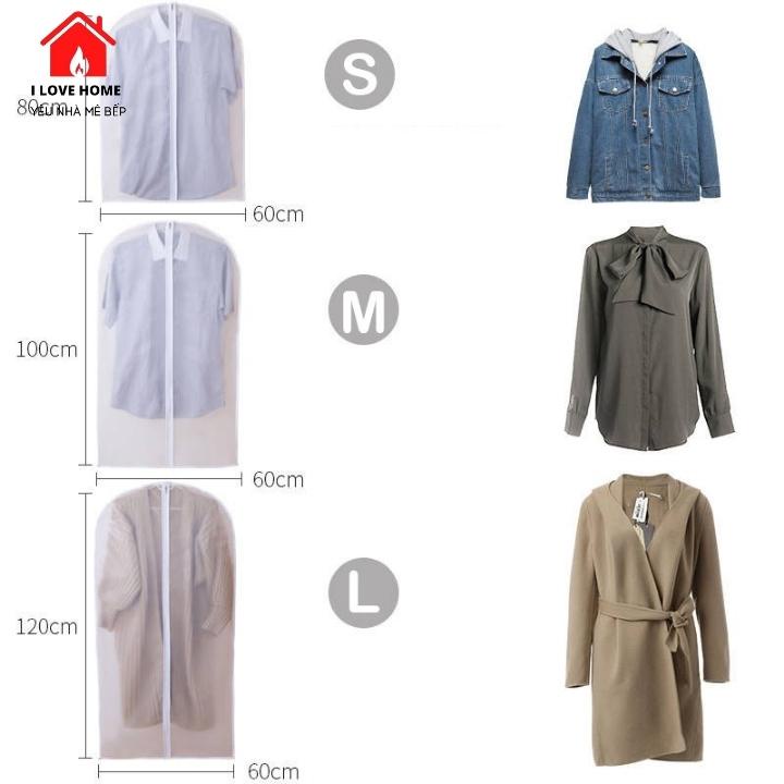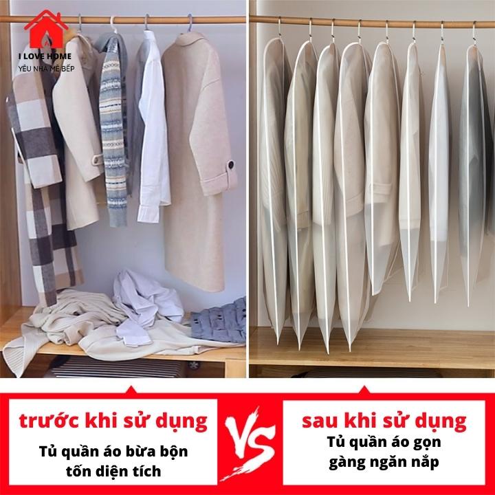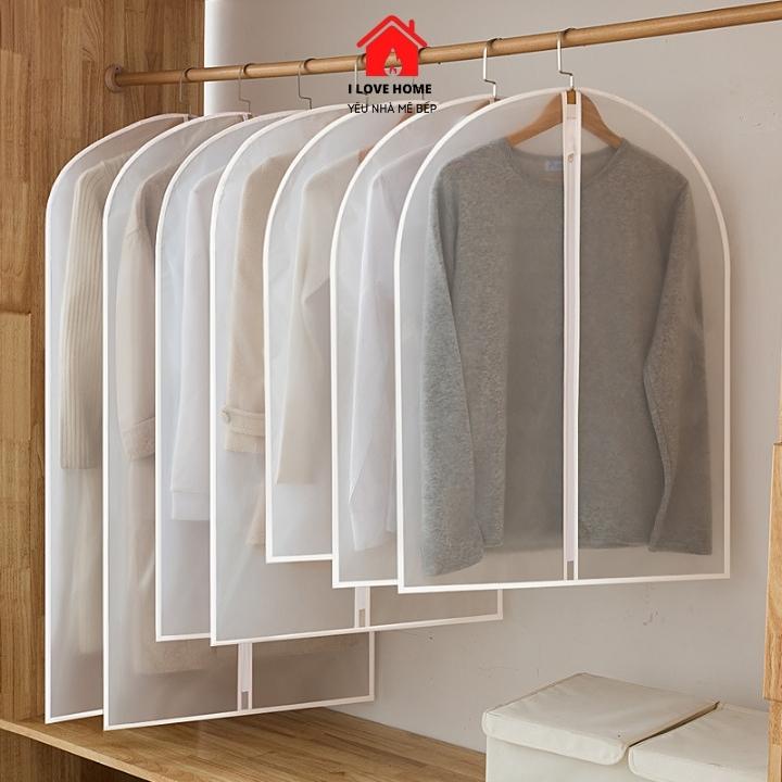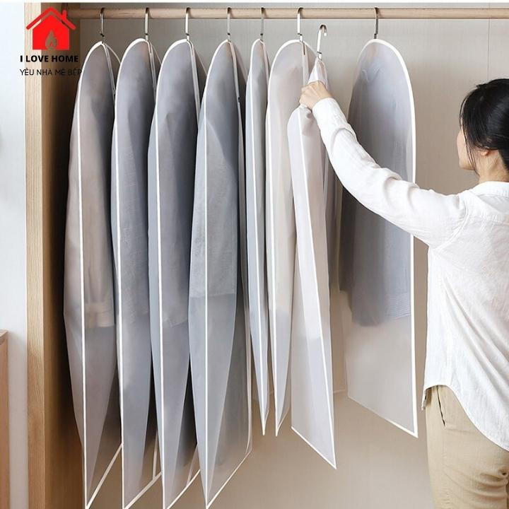 Túi bọc quần áo treo tủ chống bụi, chống ẩm mốc, túi nhựa trùm quần áo có khóa trong suốt