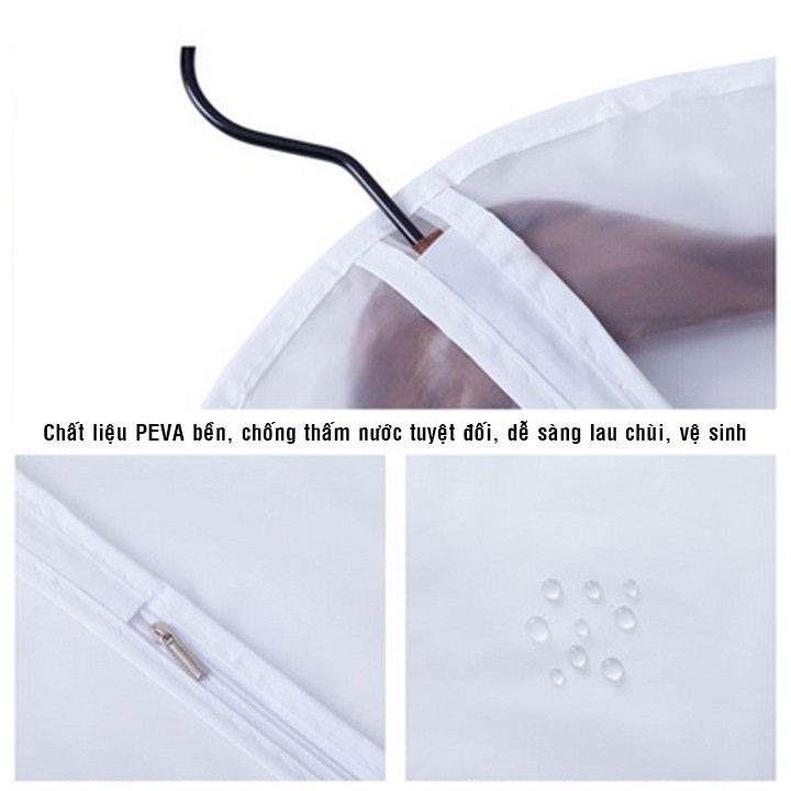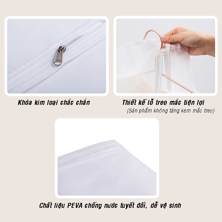 Giới thiệu Túi Bọc Quần Áo Treo Tủ Có Khóa Kéo Chất Liệu Nhựa Trong Suốt Túi Bọc Quần Áo Chống Bụi Loại Dày Set 3 Chiếc